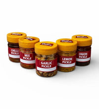 Pickle tester pack including 5 different flavors to try before buying full size.